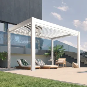 Una pérgola bioclimática es una estructura exterior con techo de lamas orientables que te permite controlar la luz, la ventilación y la temperatura de forma natural. Gracias a su sistema ajustable, puedes disfrutar de tu terraza o jardín durante todo el año, adaptándote a cualquier clima. click aquí para visitar Biohort