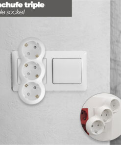 - Artículo también conocido como adaptador triple schuko, adaptador schuko recto, toma tierra schuko, adaptador 16A 250V, enchufe triple schuko, adaptador de corriente, adaptador blanco, enchufe múltiple, enchufe recto, enchufe protección tierra, etc.
