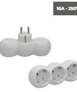 – Artículo también conocido como adaptador triple schuko, adaptador schuko recto, toma tierra schuko, adaptador 16A 250V, enchufe triple schuko, adaptador de corriente, adaptador blanco, enchufe múltiple, enchufe recto, enchufe protección tierra, etc.