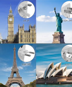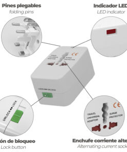 - Compatibilidad universal: Acepta múltiples tipos de enchufes de diferentes regiones, lo que lo convierte en un accesorio versátil y práctico para personas que viajan con dispositivos electrónicos o equipos eléctricos.