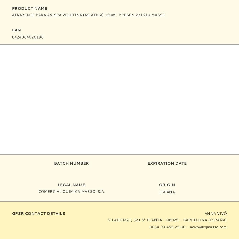 ATRAYENTE PARA AVISPA VELUTINA (ASIATICA) 190ML PREBEN 231610 MASSO