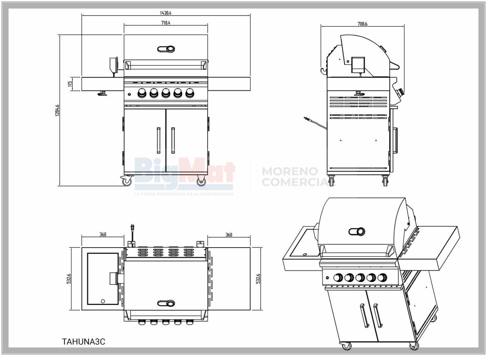 BARBACOA GAS TAHUNA 3 C/CARRO