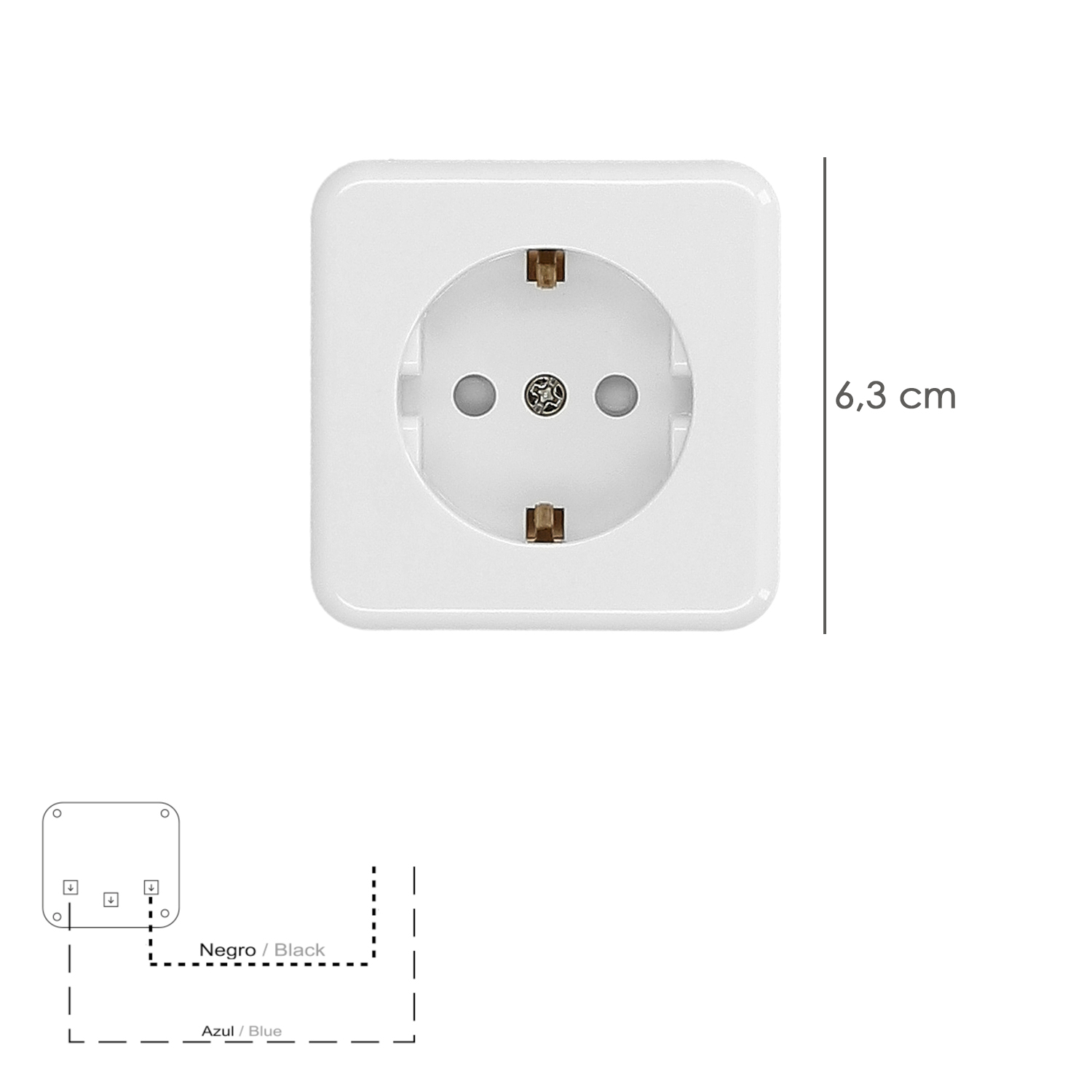– Artículo conocido como enchufe, base, base schuko, enchufe, toma corriente, base sin TT, enchufes, mecanismo superficie, enchufe empotrar, toma corriente schuko, etc.