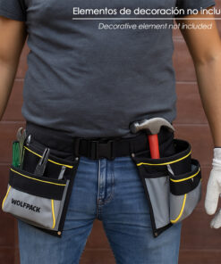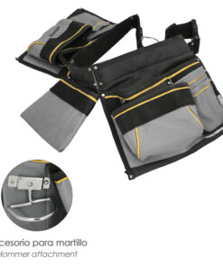 - Artículo también conocido como bolsa herramientas, riñonera portaherramientas, riñonera electricista, bolsa trabajo profesional, bolsa portaherramientas, cinturón herramientas, etc.