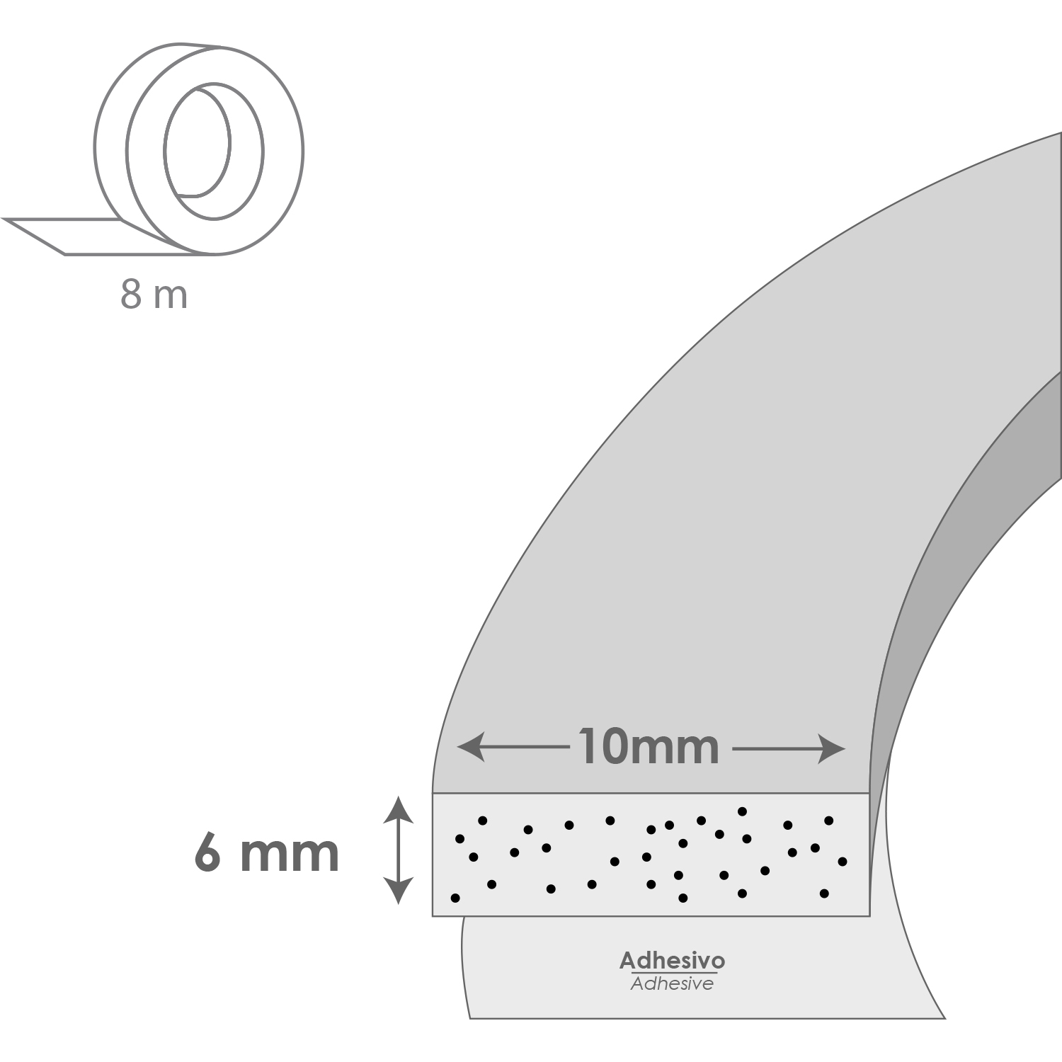 – De 8 metros de largo y 10 mm de ancho, ideal para garantizar un sellado perfecto en tus ventanas.
