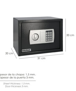 - Medidas: 31x20x20cm Cerradura de bloqueo electrónico. Bulones de acero.