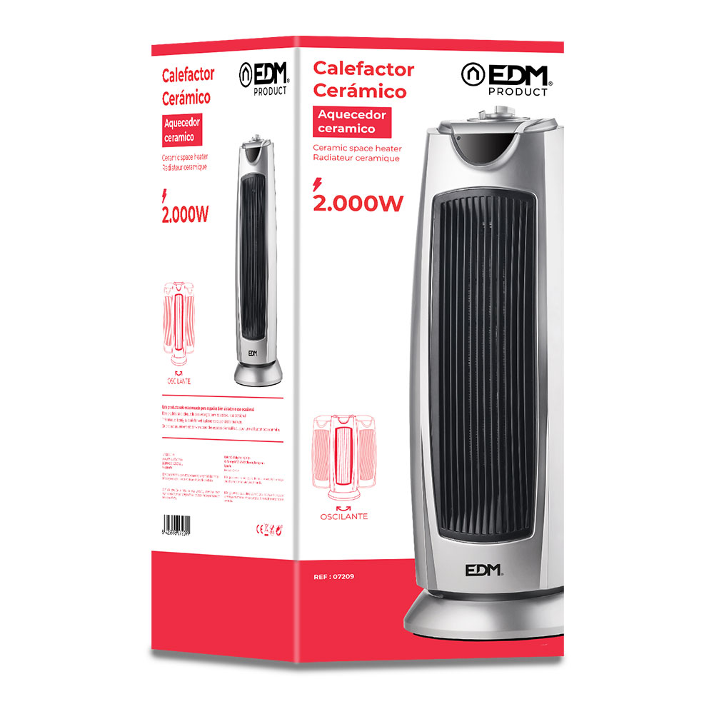 CALEFACTOR DE TORRE, CERAMICO, OSCILANTE – MODELO SILVER – 1000-2000W – EDM