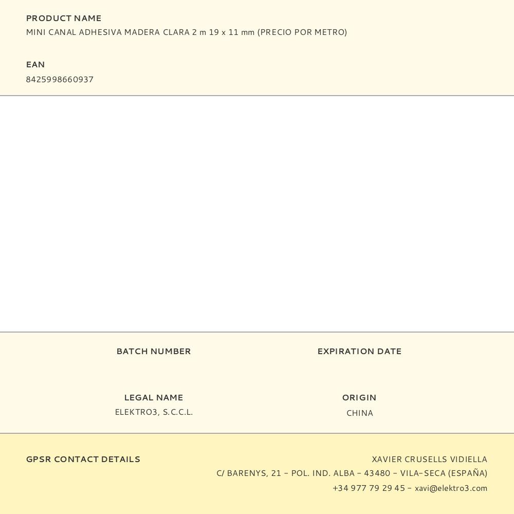 CANALETA ADHESIVA MADERA CLARA 19X11 2MTS