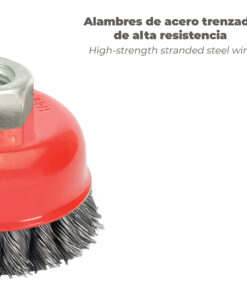 – Cepillo taza de alambre fabricado en acero trenzado. Resistente y duradero.