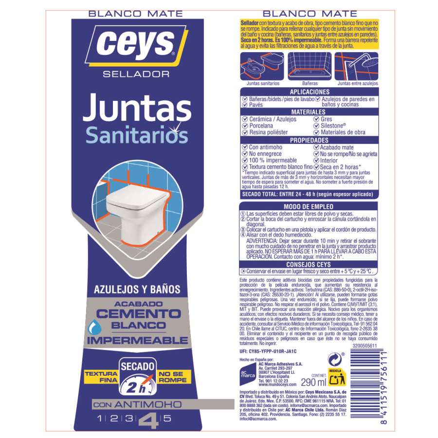 CEYS STOP MOHO JUNTAS SANITARIOS BLANCO MATE CARTUCHO 290ML