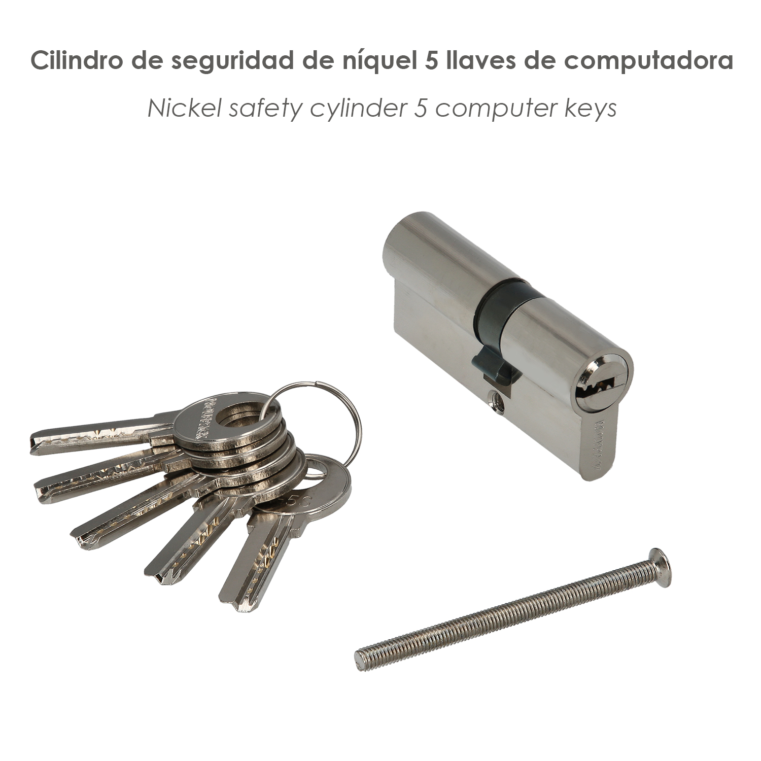 Cilindro Seguridad 30×40 mm/13,5 Leva Corta Niquelado Con 5 llaves
