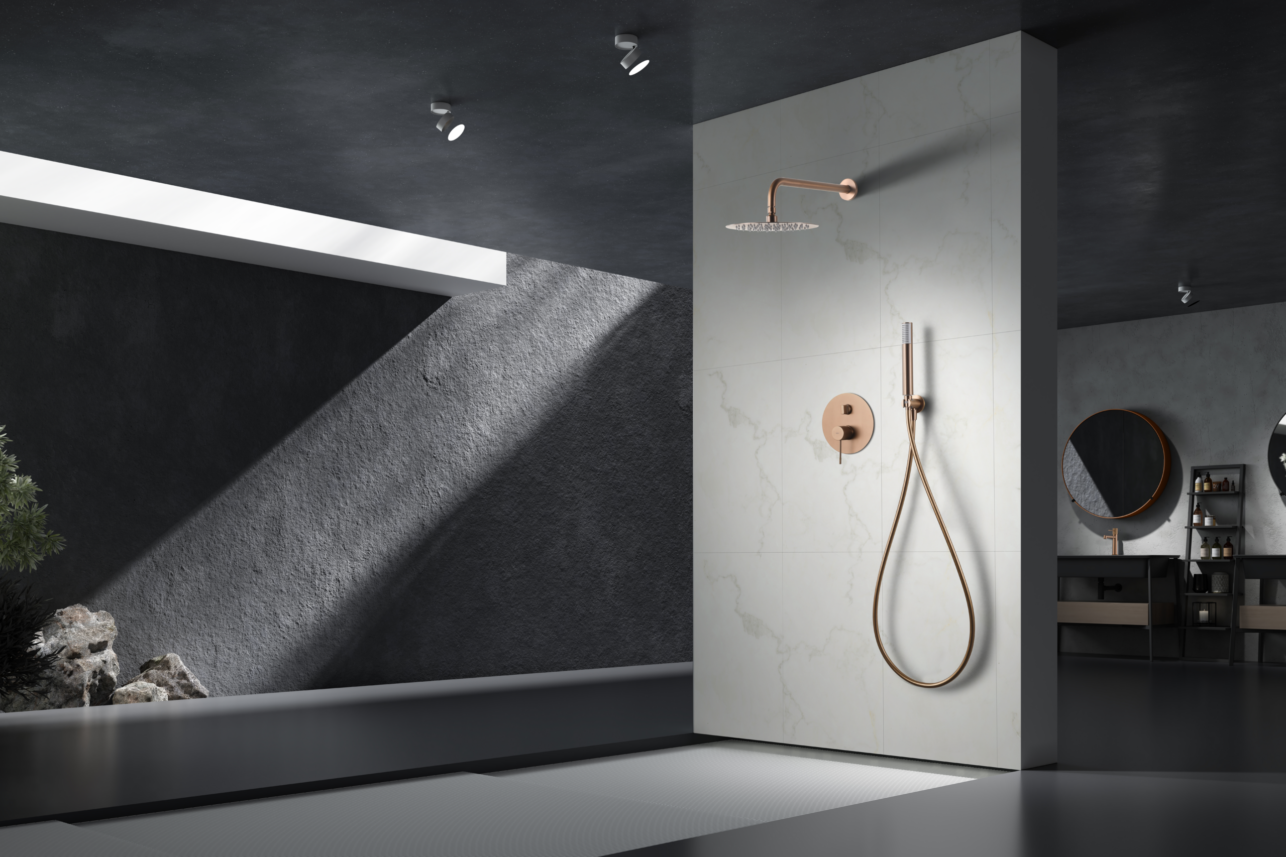 CONJUNTO DUCHA MONOMANDO EMPOTRADO LINE ORO ROSA CEPILLADO