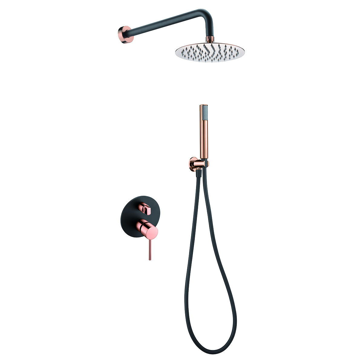 CONJUNTO DUCHA MONOMANDO EMPOTRADO MILOS STICK NEGRO/ORO ROSA (SIN CAJA REG)