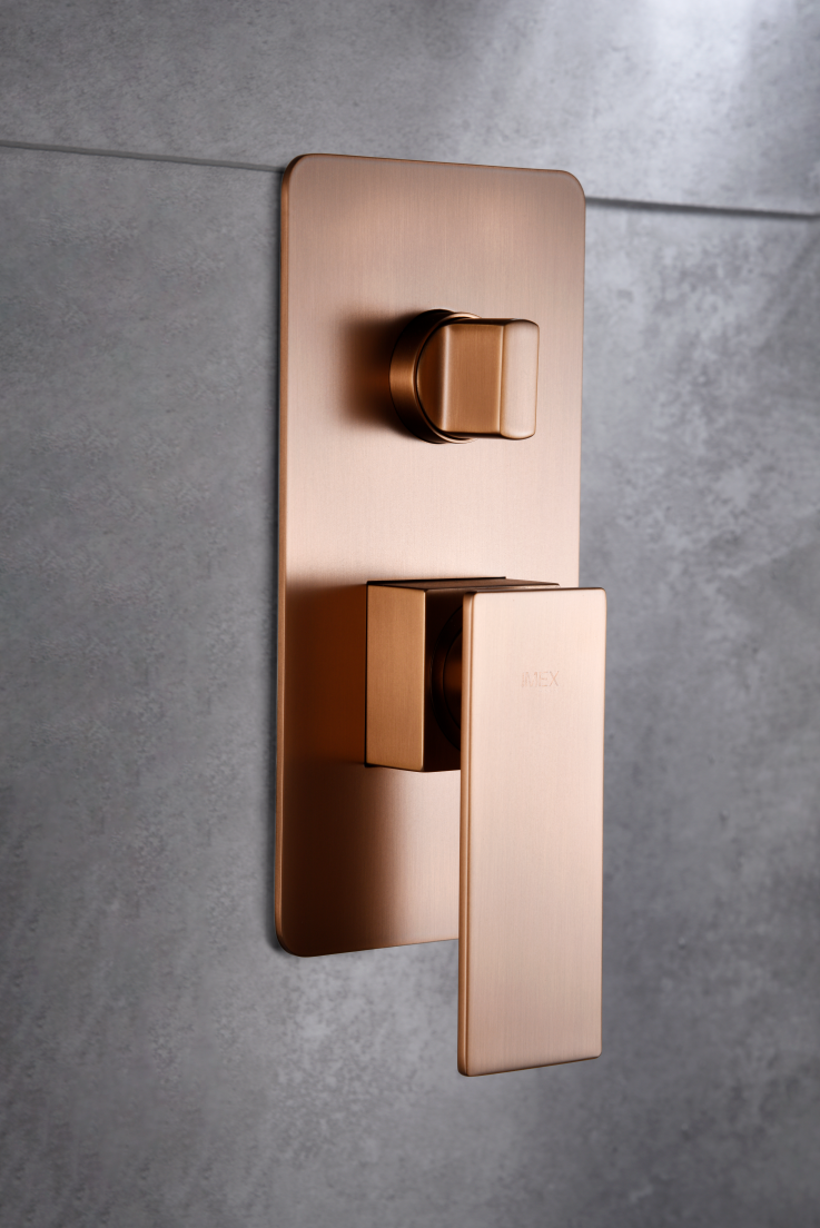 CONJUNTO DUCHA MONOMANDO EMPOTRADO PISA ORO ROSA CEPILLADO