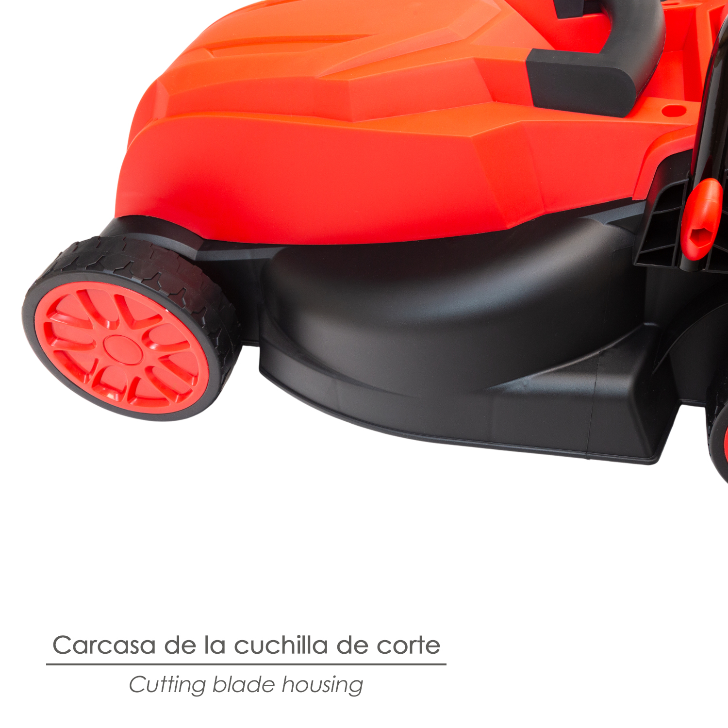 - Con un diámetro de corte de 32 cm y ruedas delanteras/traseras de 127 mm, garantiza un trabajo eficiente y uniforme.