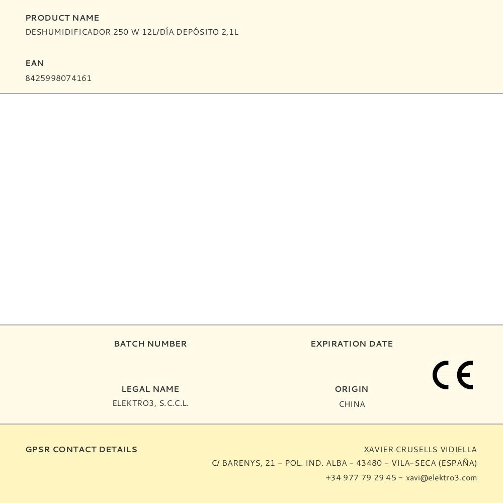 DESHUMIDIFICADOR 250W 12L/DIA DEPOSITO 2,1L EDM
