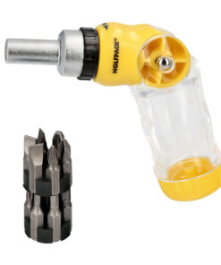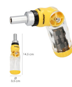 - Mango realizado en plastico y cabezal en acero. Destornillador articulado, le permite llegar a lugares estrechos en los que un destornillador convencional no cabe.