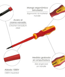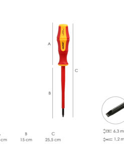 Destornillador Plano Aislado Certificado VDE 1.000 V. Medida 1,2 x Ø 6,5 x 150 mm. Destornillador Seguridad Electricista