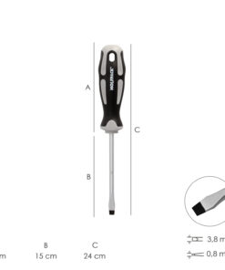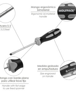 Destornillador Plano Estampado Acero S2 Mango TPR Bimaterial. Medida 0,8 x Ø 4,0 x 150 mm. DIN5265