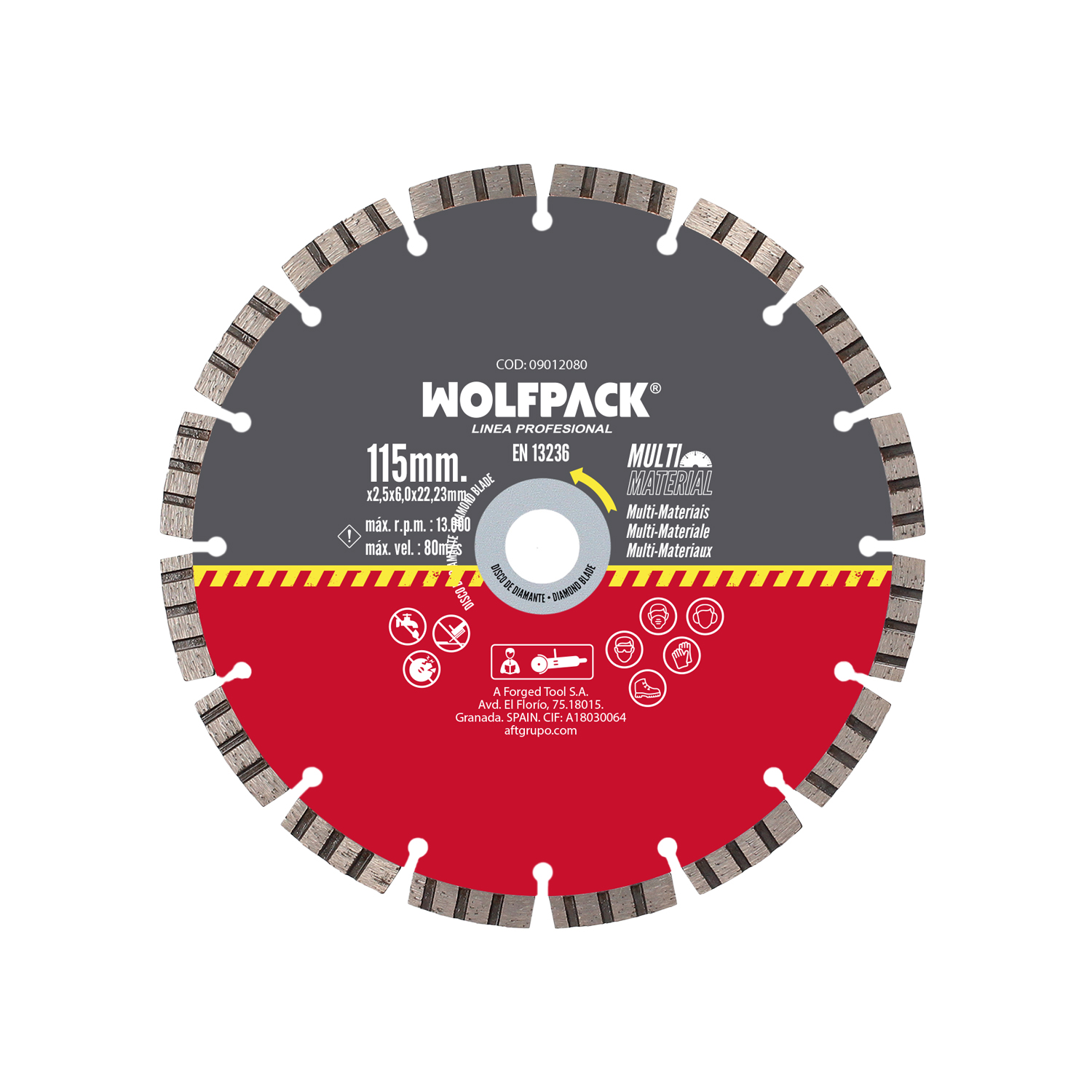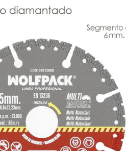 - Equipado con segmentos de diamante de alta calidad que garantizan cortes rápidos, precisos y duraderos, incluso en materiales duros y resistentes.