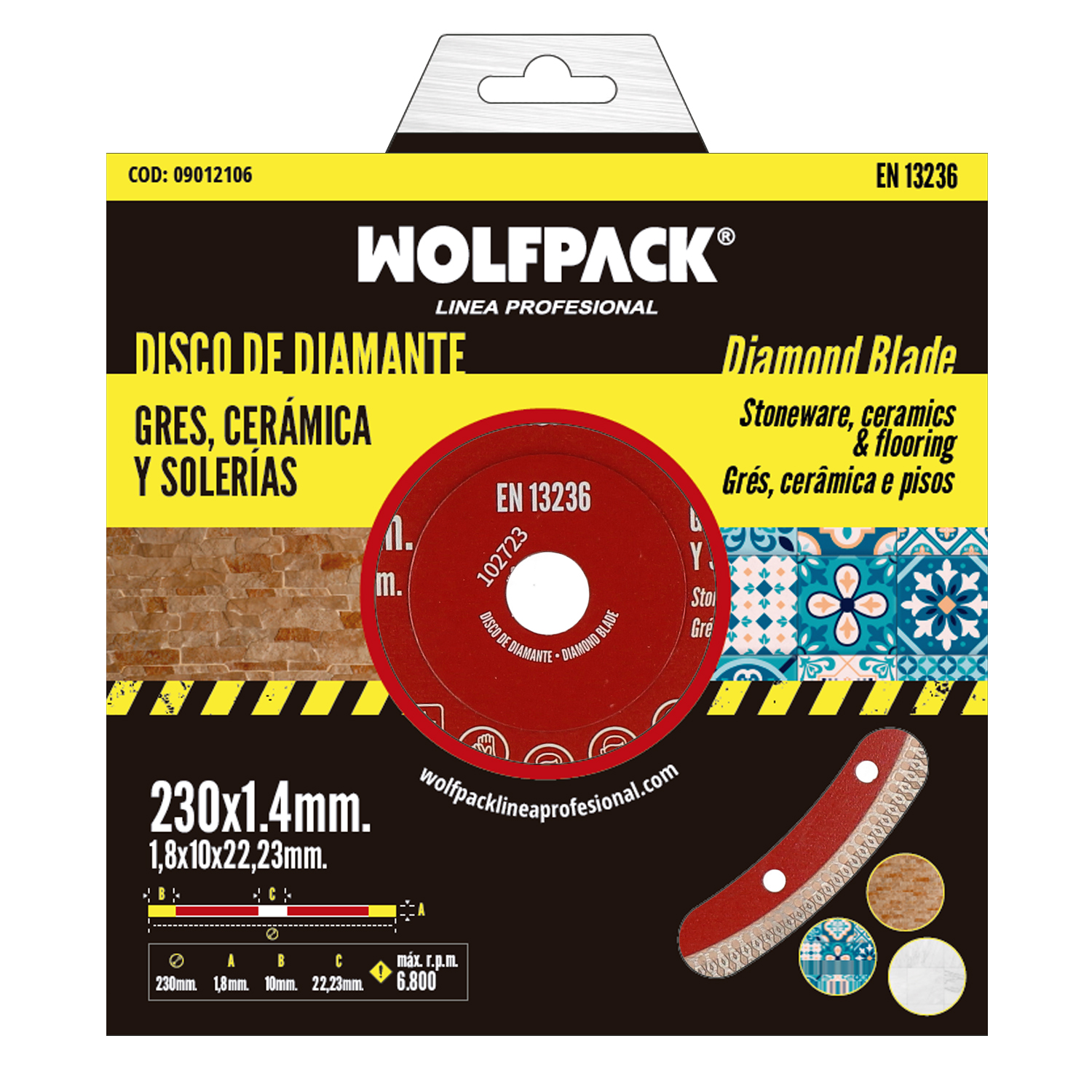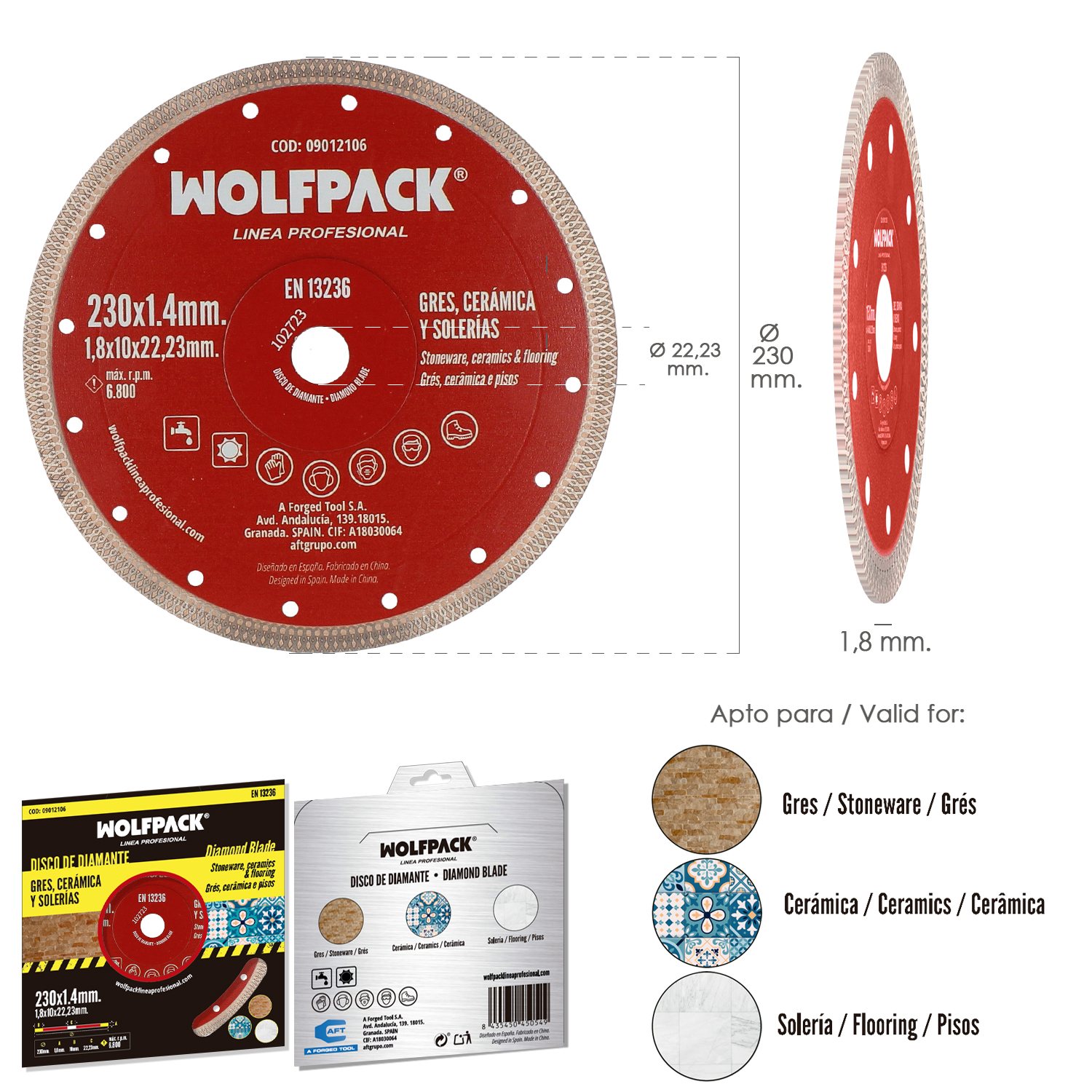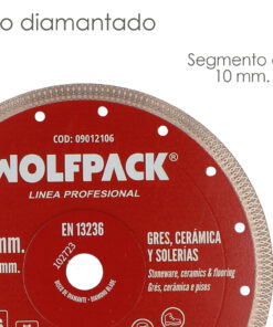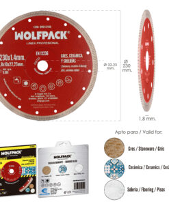 – Disco diamantado versátil para cortar materiales duros como porcelánicos, gres, cerámica, solería, etc.
