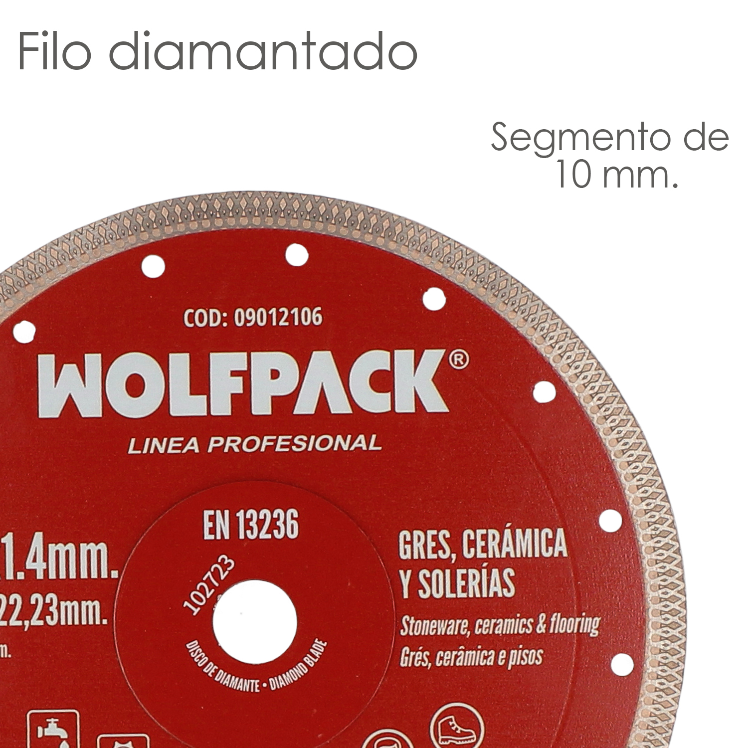 – Segmento de 10 mm. con alta aportación de diamante y un diseño especial para favorecer el corte de los materiales indicados.