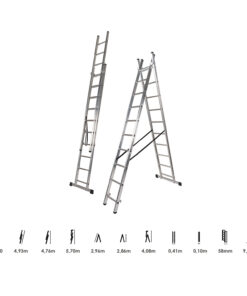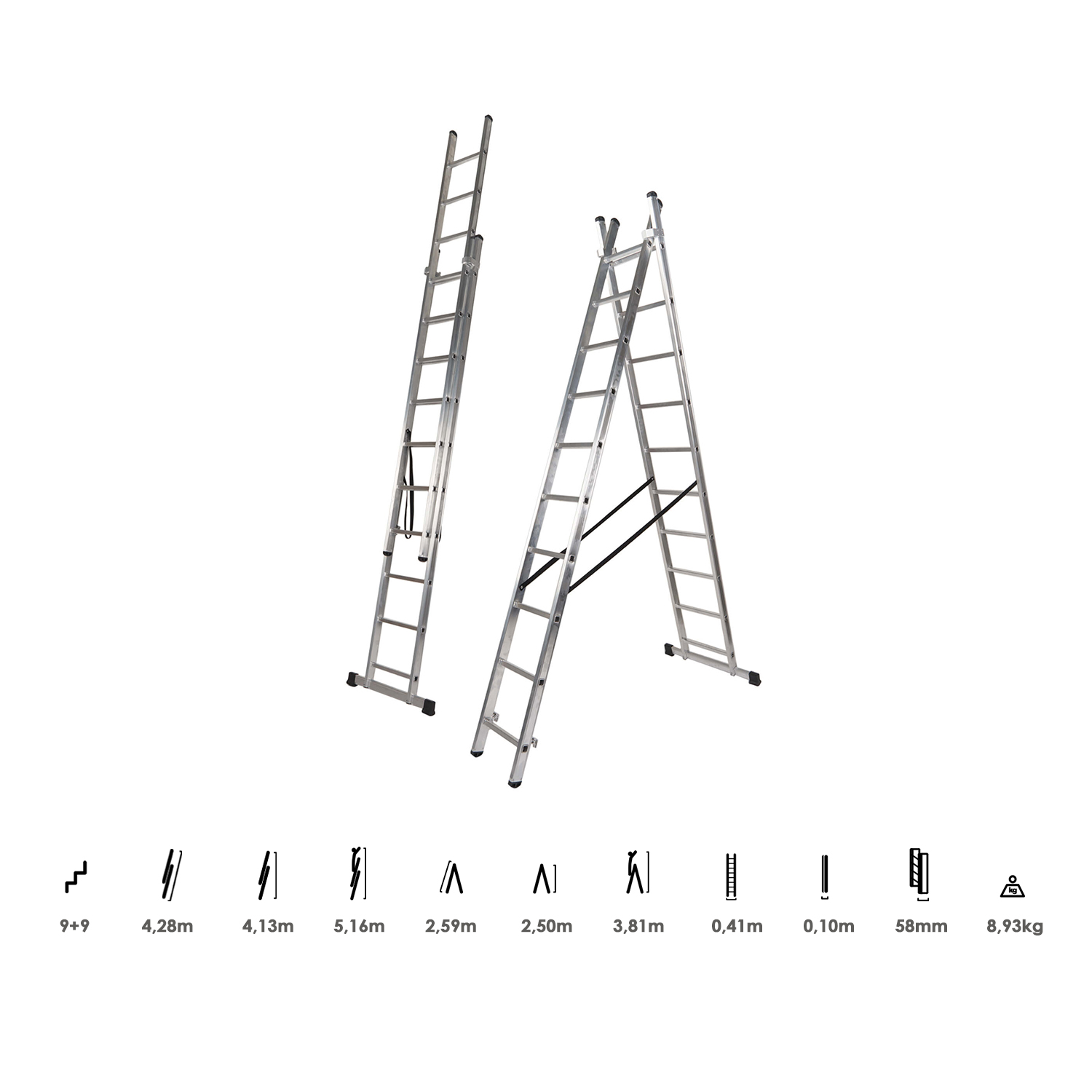 Escalera Aluminio 2 Tramos 10+10 Peldaños. Plegable, Antideslizante, Resistente