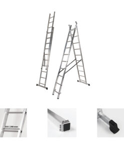 Escalera Aluminio 2 Tramos 9+9 Peldaños. Plegable, Antideslizante, Resistente