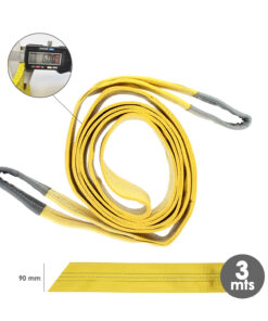 - Longitud: 3 metros. Anchura: 9 cm. Capacidad de carga: 3.000 Kg. Factor de seguridad: 7:1