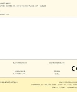 ESTUFA DE CUARZO – MODELO PLANO – ANTI-VUELCO – 400-800W EDM