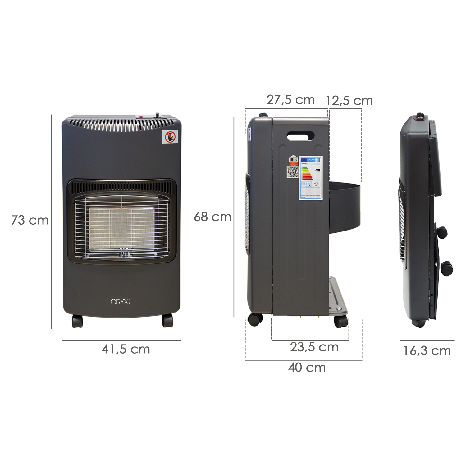 – Estufa plegable, por lo que al finalizar el invierno puede ser plegada y guardad en casi cualquier lugar, tan solo ocupa 16,3 cm. (Incluyendo las ruedas).