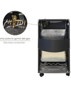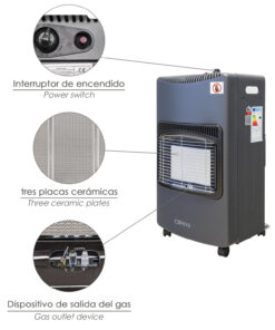 - Placas de cerámica de alta calidad que maximizan la transferencia de calor al ambiente, reduciendo la pérdida de energía y aumentando la eficiencia energética. Cuenta con encendido piezo eléctrico y además cuenta un selector de llama con el que podrás ajustar la temperatura con precisión y seleccionar entre diferentes niveles de potencia para adaptar el calor a tus necesidades específicas.