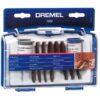 ¿Qué proyectos puedes realizar?. . Las fresas de alta velocidad son ideales para la retirada de material en aplicaciones como el conformado, el tallado, el grabado, el vaciado, el acanalado, la incrustación mediante orificios cónicos y el fresado con técnica de manos libres. Consejo: echa un vistazo a la imagen o el vídeo del icono para ver el resultado en el material. ¿Cómo se utiliza?. Utiliza los laterales del cabezal para conseguir un resultado eficaz.El agarre más usado para este accesorio es el agarre del lápiz.Las pasadas menos agresivas y más frecuentes siempre obtienen mejores resultados que la presión excesiva o la introducción forzada de la herramienta en el material. Puede usarse con un ángulo inferior a 90°. Complemento recomendado: eje flexible (225); soporte para herramientas de eje flexible (2222); empuñadura de detalle (577); multi-vise (2500).. . Materiales donde se puede utilizar. Este accesorio funciona mejor en materiales más blandos, como la madera, el plástico y metales blandos como el aluminio, el cobre y el latón. Consulta la amplia lista de materiales en las siguientes imágenes. Velocidad recomendada. Aluminio: 30 000. Latón: 30 000. Cobre: 30 000. Madera dura: 35 000. Madera blanda: 20-25 000. Plástico: 35 000. Acero: 20-25 000 . .