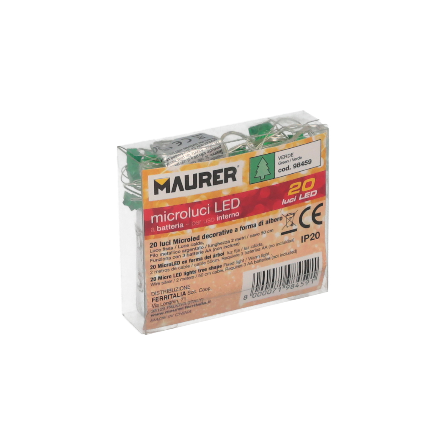 Guirnalda Luces Navidad Arboles 20 Leds Color Verde. Luz navidad interiores IP20 A Pilas 3AA (No Incluida)