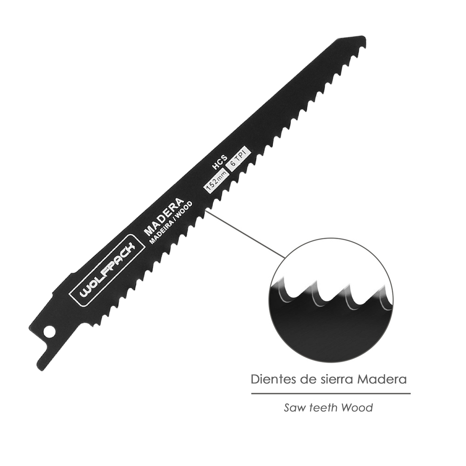 Hoja Para Sierra Sable Madera 152 mm. 6 TPI. 5 piezas. Especial para madera.