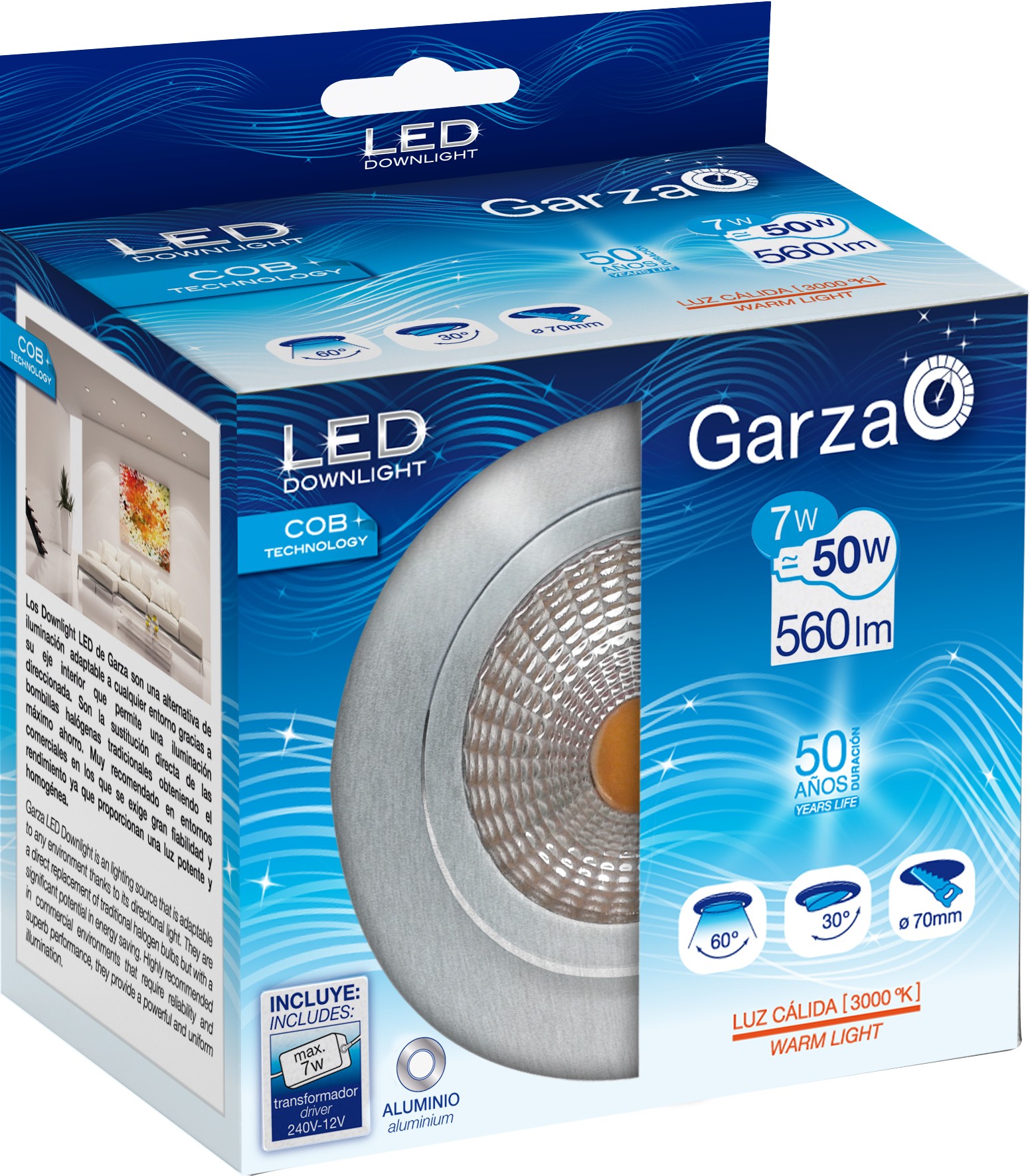 LED DOWNLIGHT 7W 3000K 50V 560LM C/DRIVER ALUM GRIS
