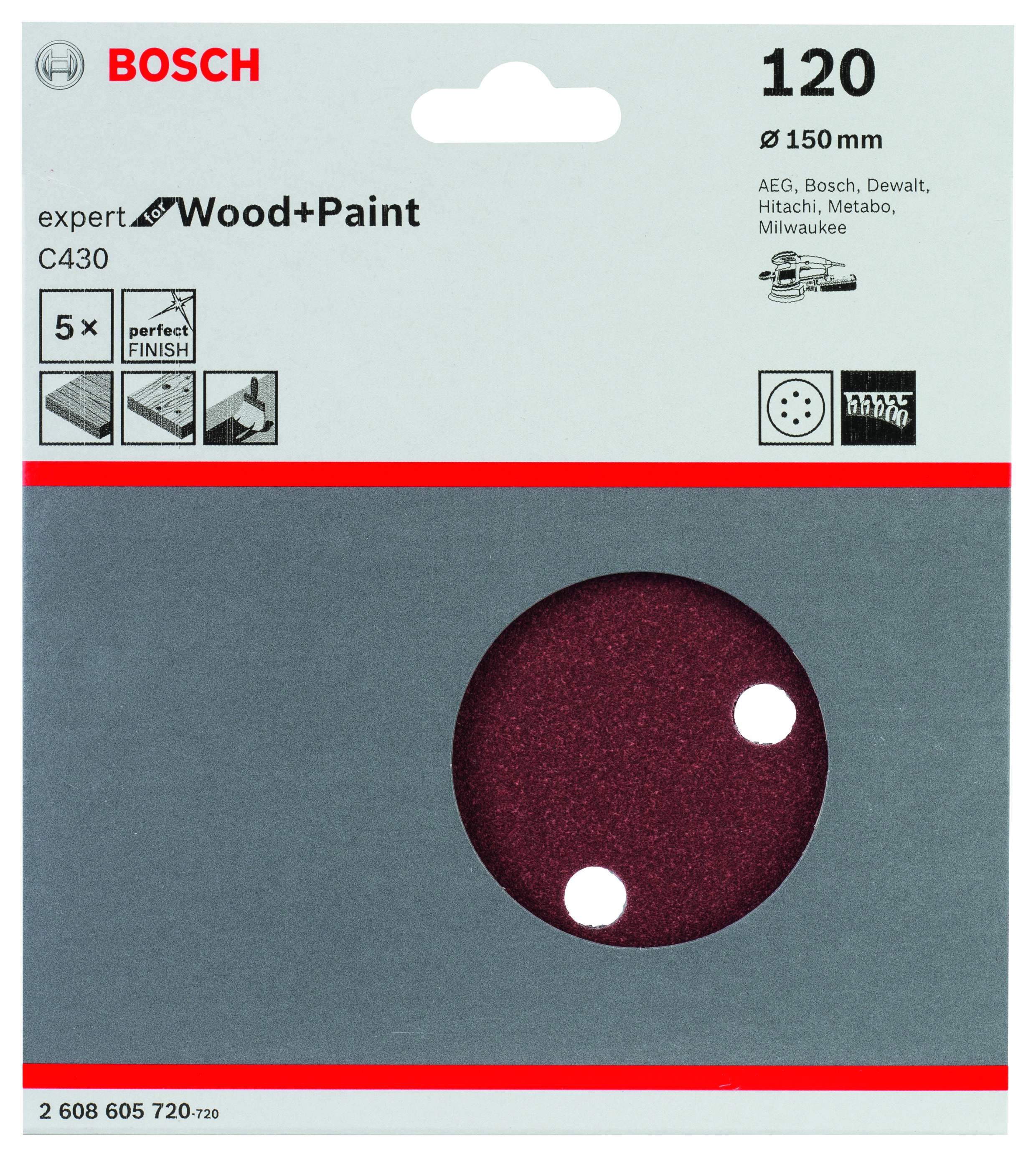 LIJA EXCENTRICA C430: 150MM 8P. G120 X 5UDS