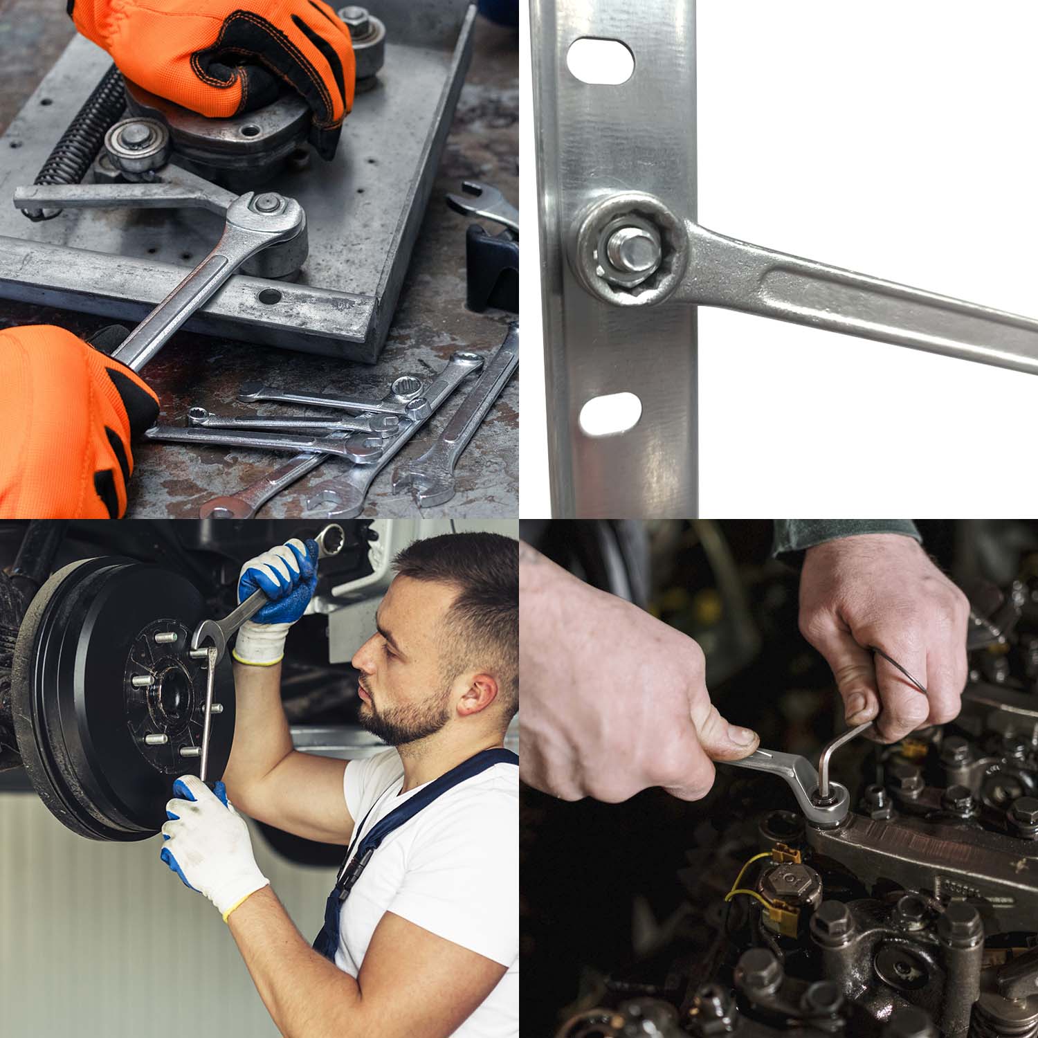 - Cabezas de doble anillo biseladas para un ajuste óptimo de los tornillos.