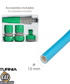 – Con accesorios de riego. Incluye un lanzarriegos, dos conectores y un adaptador de grifo 1/2 – 3/4″