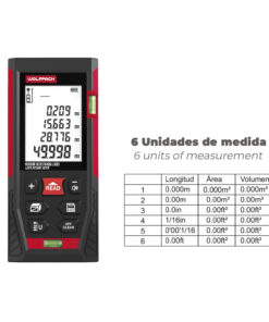 - Rango de medición de 0,05 a 50 metros. Precisión: <2 mm