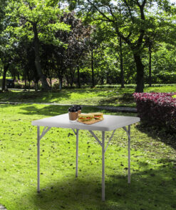 - Medida: 86x86x74 cm. Tablero fabricado en HDPE (Polietilino de Alta Densidad), material muy resistente y duradero, con protección frente a los rayos solares. Estructura realizada en acero pintado color gris.