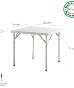 - Medida: 86x86x74 cm. Tablero fabricado en HDPE (Polietilino de Alta Densidad), material muy resistente y duradero, con protección frente a los rayos solares. Estructura realizada en acero pintado color gris.
