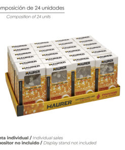 - Al adquirir 24 unidades, la caja puede usarse como expositor, y estaría compuesto por: 6 cajas de bombillas esfera blanco calido. 6 cajas de bombillas esfera multicolor. 6 cajas de bombillas estrella blanco calido. 6 cajas de bombillas estrella multicolor.