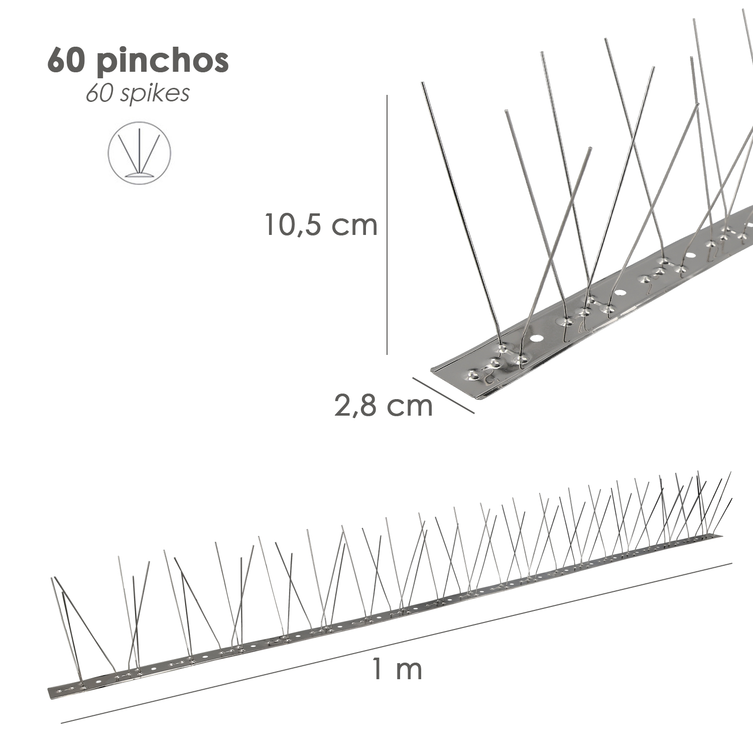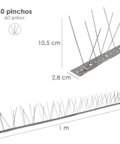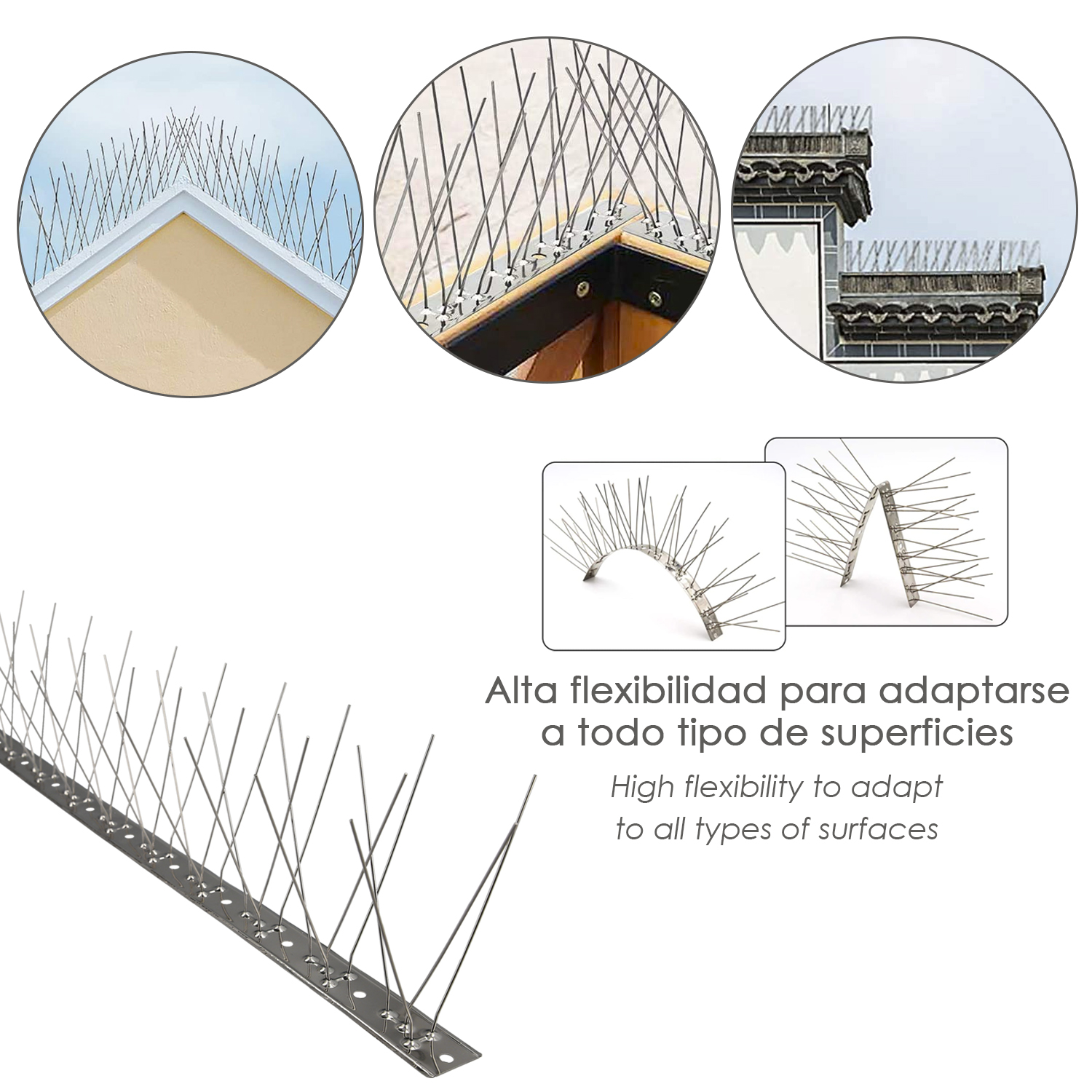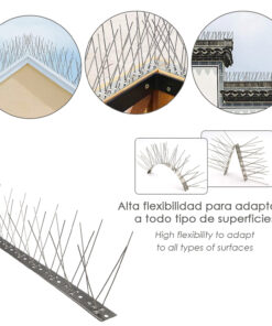 Pincho Anti Palomas / Pajaros 1 Metro Inoxidable Pincho Doble 60 Pinchos. Adaptable a Varias Posiciones