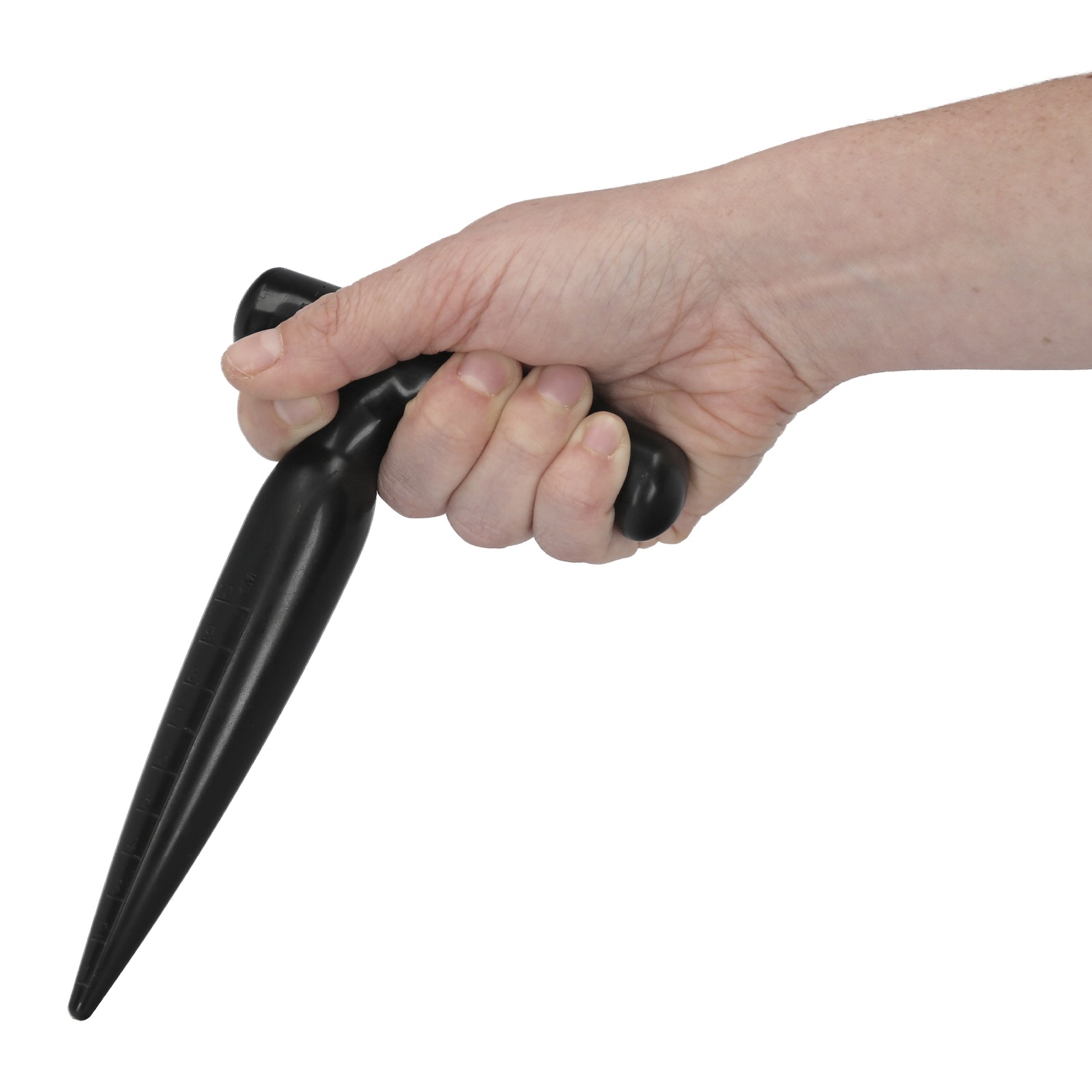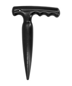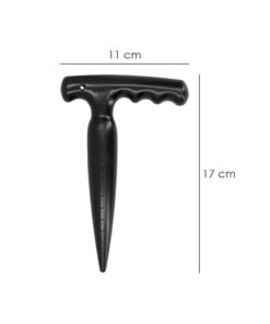 - Con una medida de 17 cm y fabricado en plástico, este plantador destaca por su eficiencia. Su mango en forma de T es ergonómico.