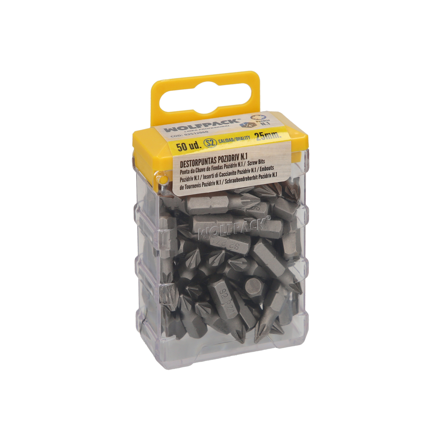 Puntas Destornillador Pozidriv Nº 1 (50 Piezas). Acero S2 al Cromo Vanadio. Puntas Hexagonales, Destorpuntas,