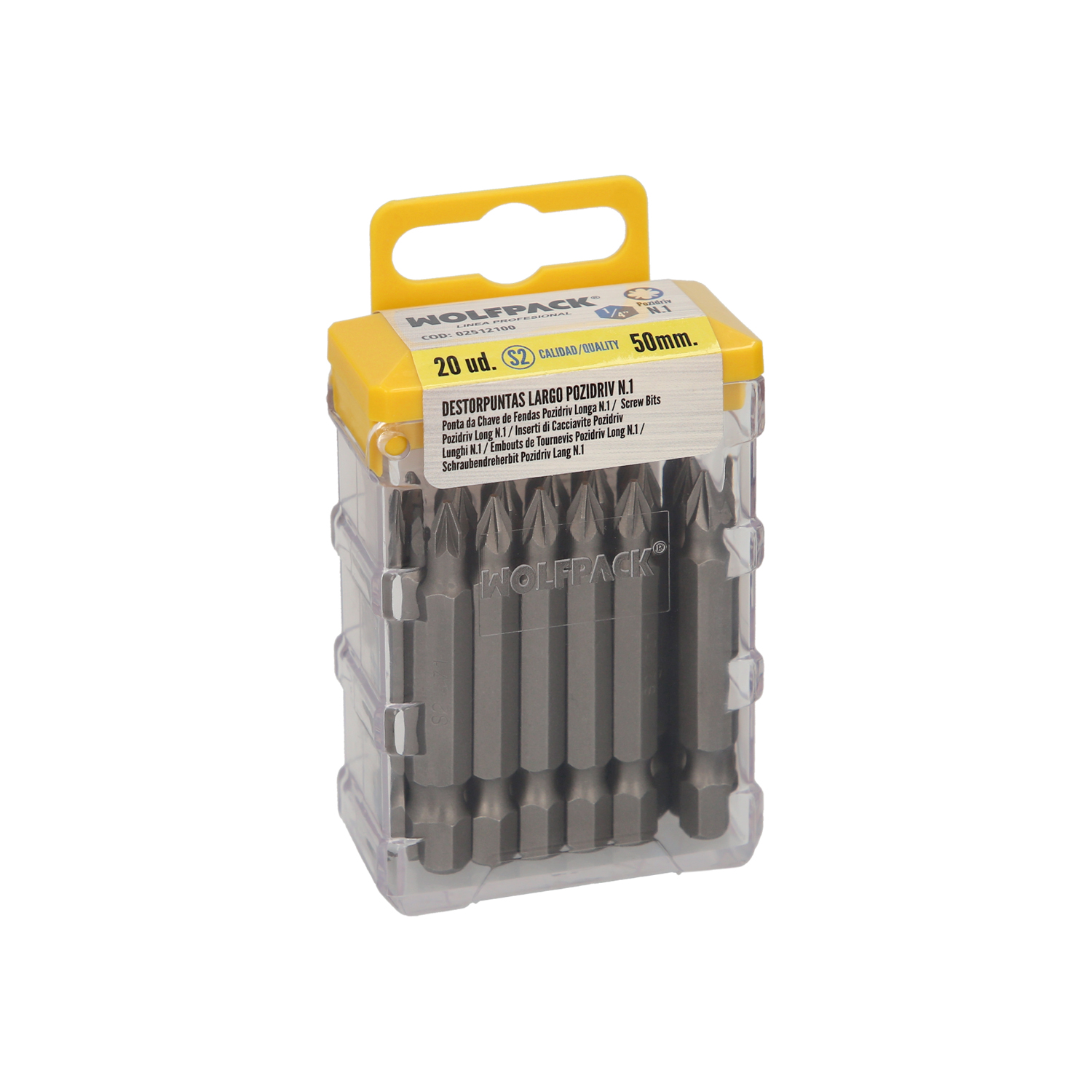 Puntas Largas Destornillador Pozidriv Nº 1 (20 Piezas). Acero S2 al Cromo Vanadio. Puntas Hexagonales, Destorpuntas,