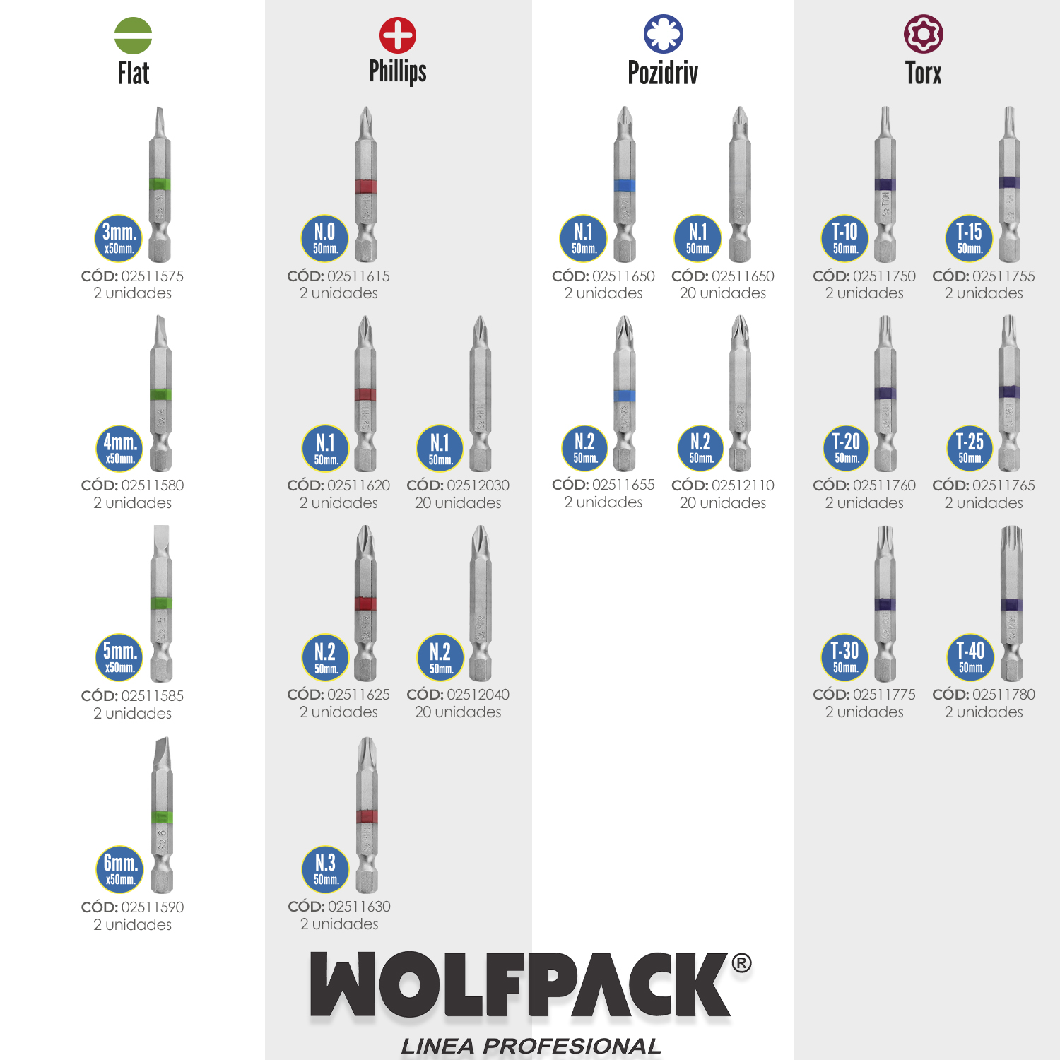 Puntas Largas Destornillador Pozidriv Nº 2 (20 Piezas). Acero S2 al Cromo Vanadio. Puntas Hexagonales, Destorpuntas,