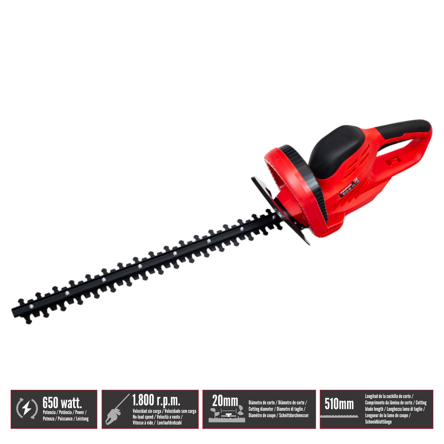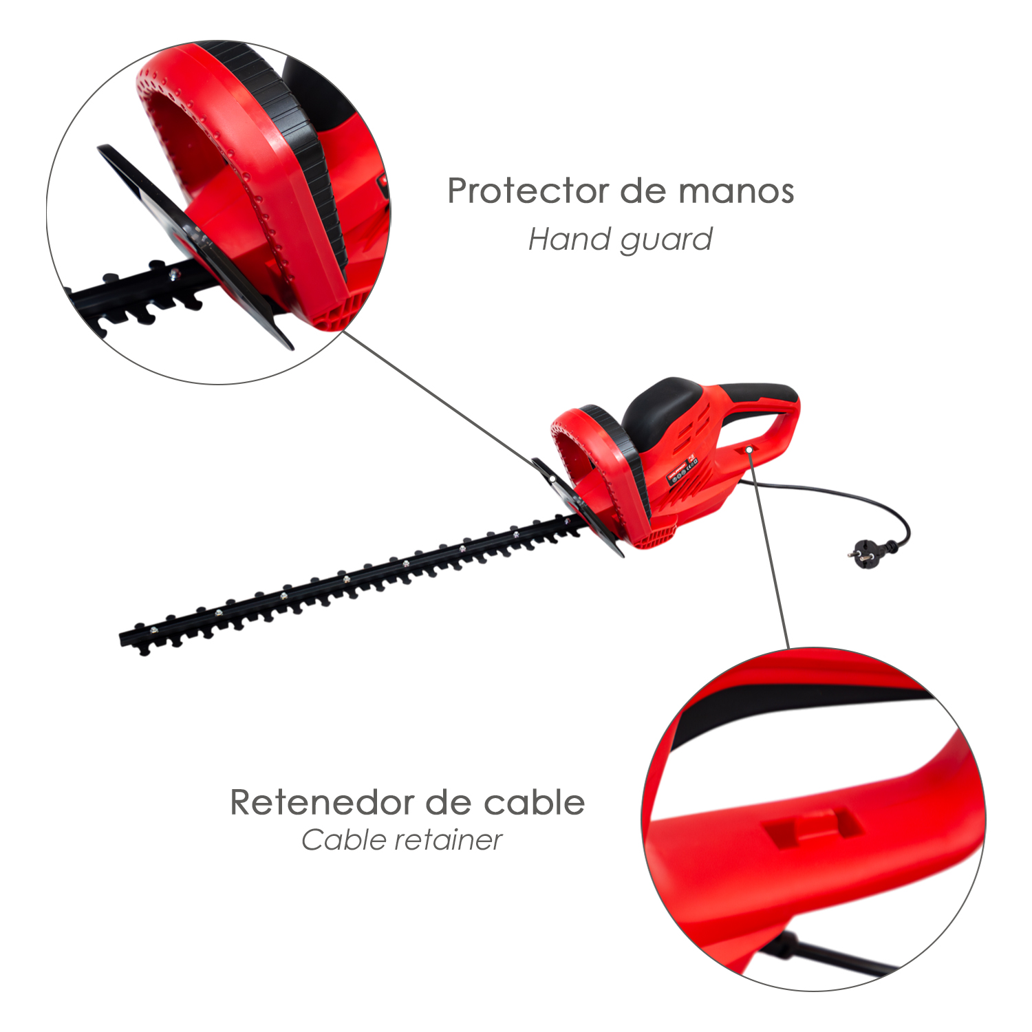 – Equipado con un motor de 650W, ofreciendo un rendimiento eficiente para cortar setos.
