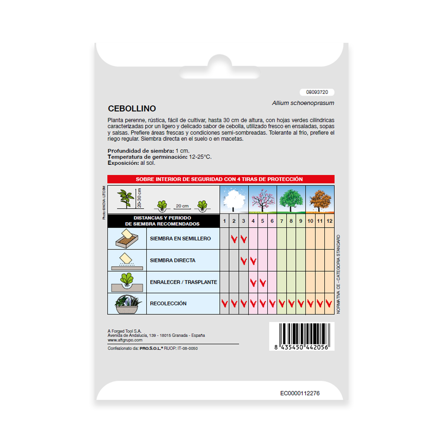 – Arbusto perenne, rústico, fácil de cultivar, hasta 30 cm de altura. Con hojas cilíndricas verdes caracterizadas por una ligera y delicada insinuación de cebolla fresca en ensaladas, sopas y salsas.